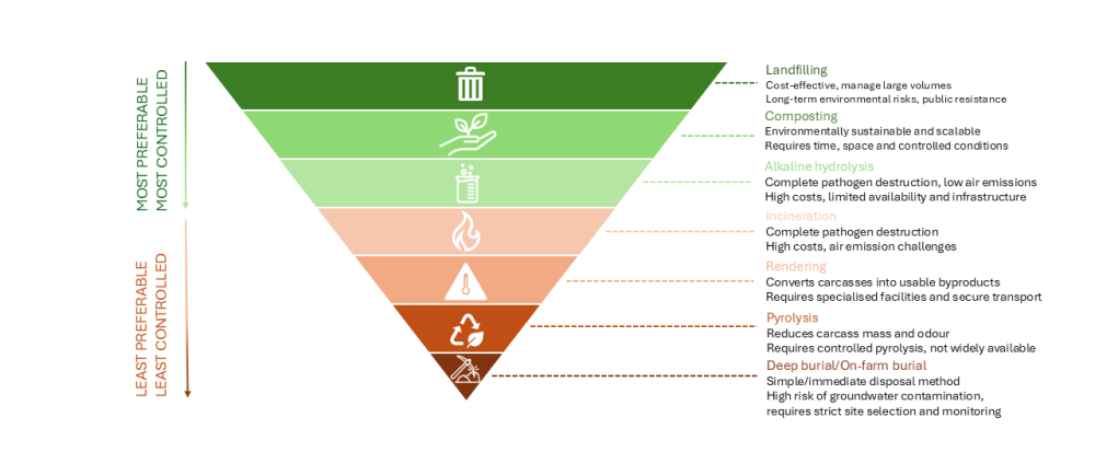 Approximately 40% of Aotearoa’s population relies on groundwater for drinking water supplies, and in rural areas, many New Zealanders rely on private supply bores, which are often untreated and unmonitored. Yet, in Aotearoa, territorial authorities have relied upon arbitrary setback distances of 20-100 m from wells or streams and a vertical separation distance of 1-2m above the water table for on-farm burials, regardless of the type of subsurface media and the number of animals being buried. Mobilisation risk for pathogens will be greater during emergency culling of livestock, such as the current response to the HPAI outbreak in December 2024, creating significant risks for human and animal health from consumption of contaminated water. In this project we will collect data from HPAI sites in Southland, which will be used to simulate the transport of pathogens in the subsurface environment and to quantify the risk to receiving waters. Our project will develop guidelines for emergency response plans for disease outbreaks and livestock burial, thus minimising risks to drinking water and human health.